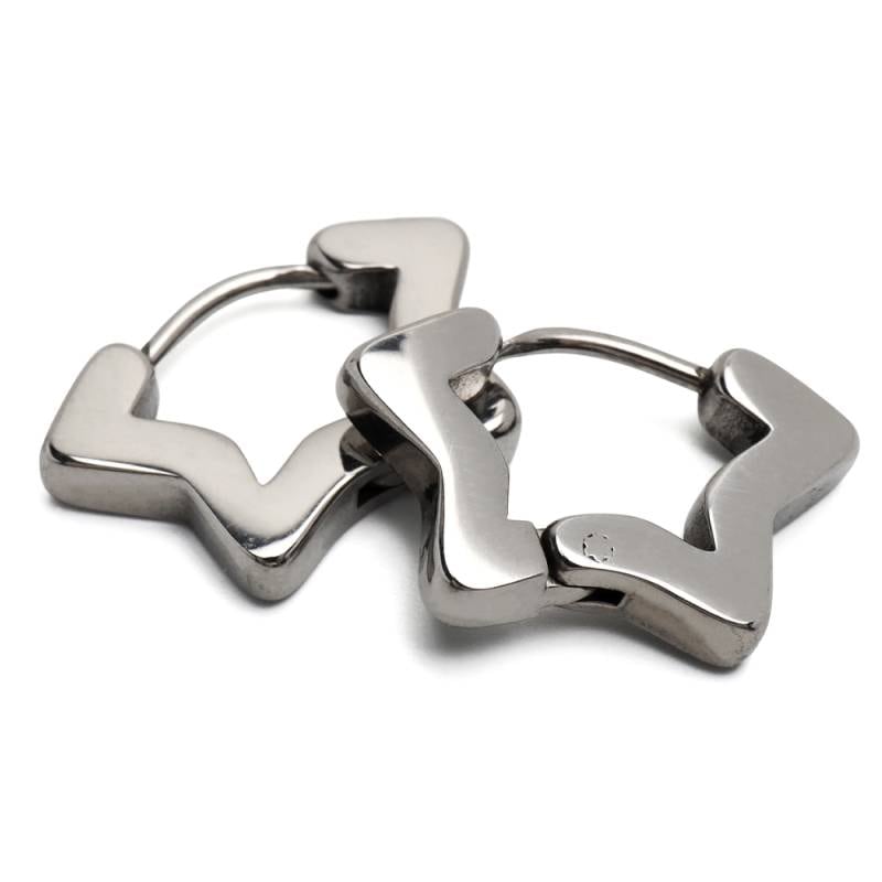 ステンレス メタリックな3連ラインにひねりを加えたフープピアス。 [e492]