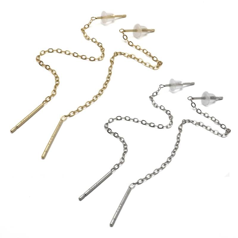 シルバー925 アズキチェーンをカーブさせたデザインのスタッドピアス [es499]