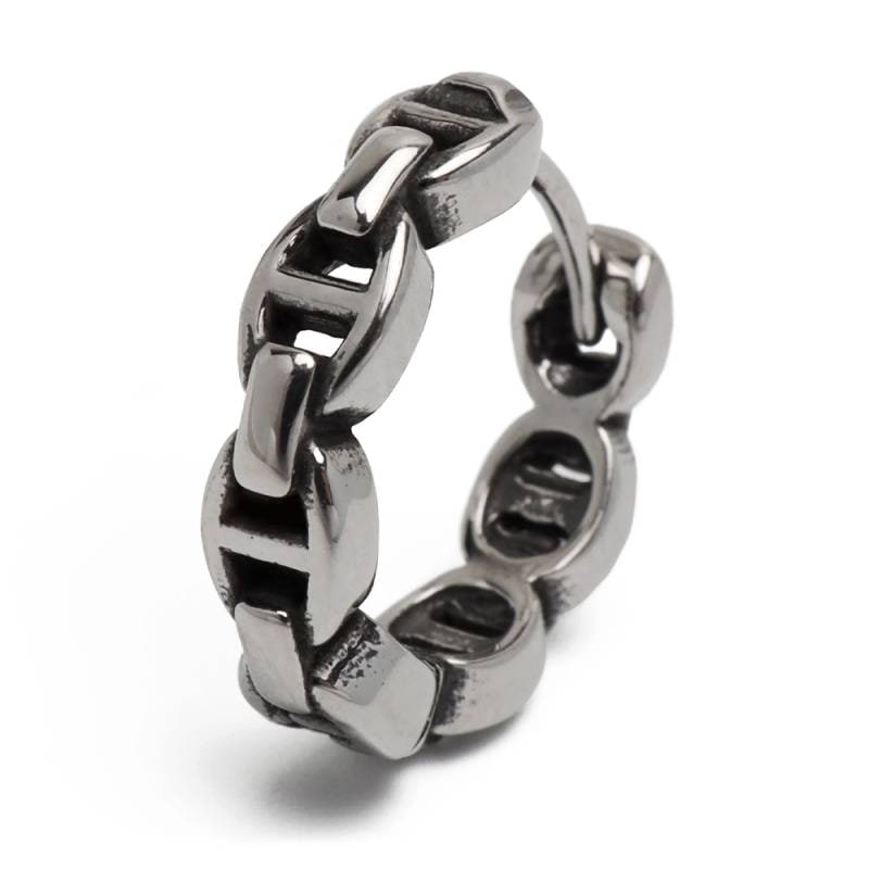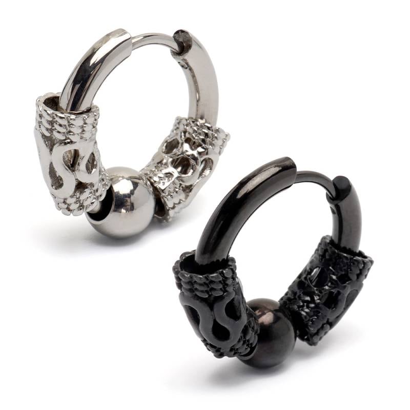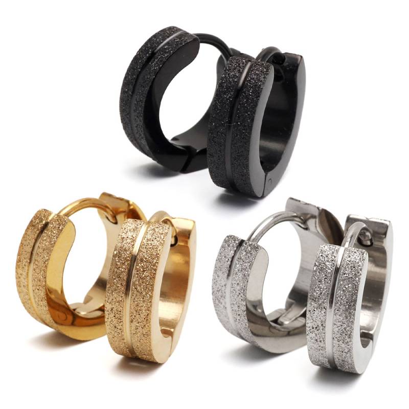 ステンレス メタリックなボディに槌目模様を施したフープピアス。2色 [e491]