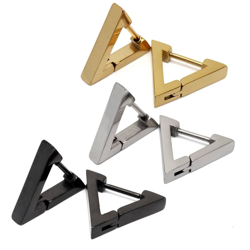 ステンレス メタリックな3連ラインにひねりを加えたフープピアス。2色 [e493]