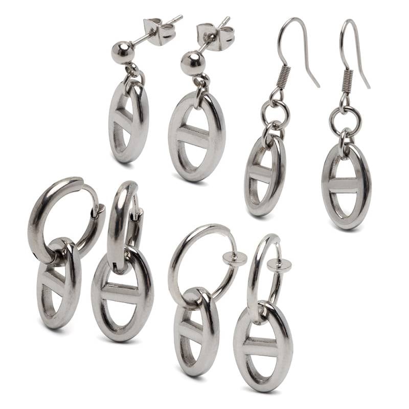ステンレス 蛇腹デザインの2連リンクピアス 4タイプ [e473]