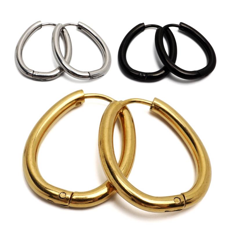 ステンレス 「ころん」としたフォルムのオーバルフープピアス。2色 [e499]