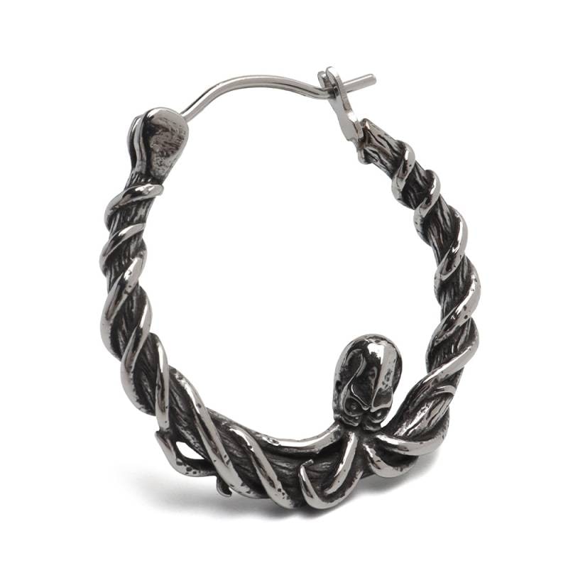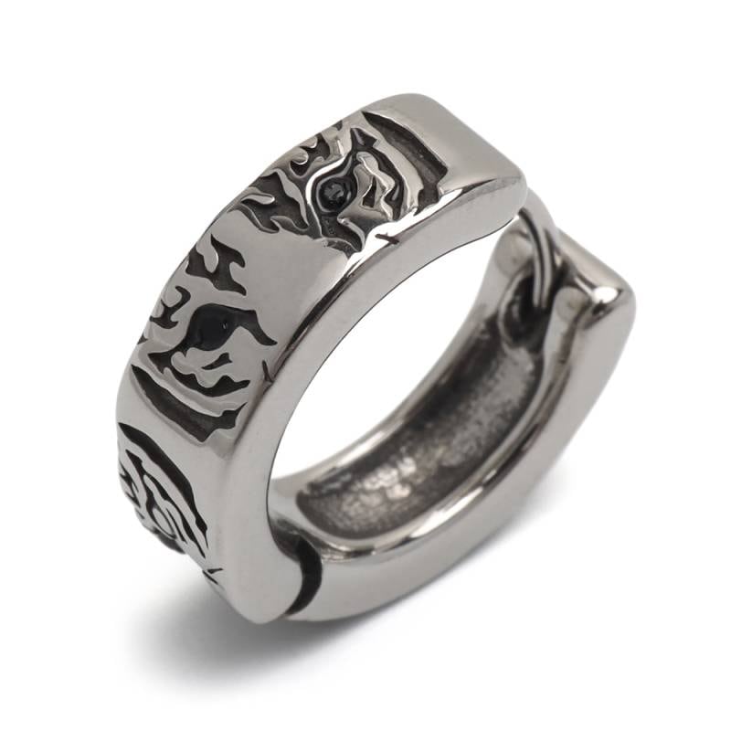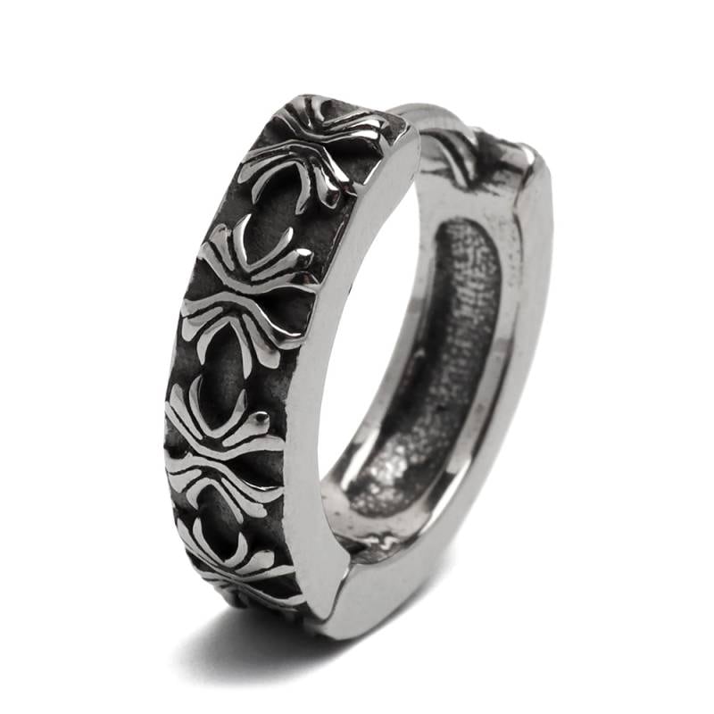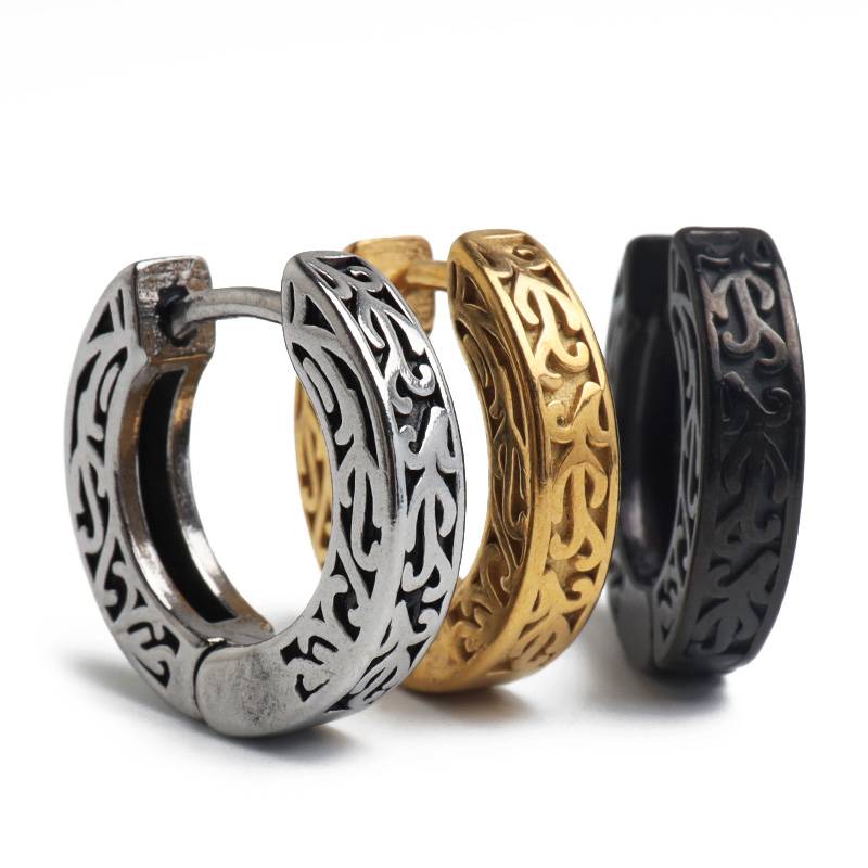 ステンレス 浮き彫りされた唐草模様が魅力的なフープピアス。3カラー [e497]
