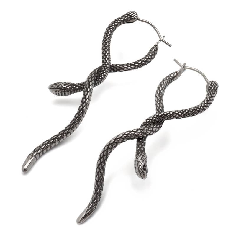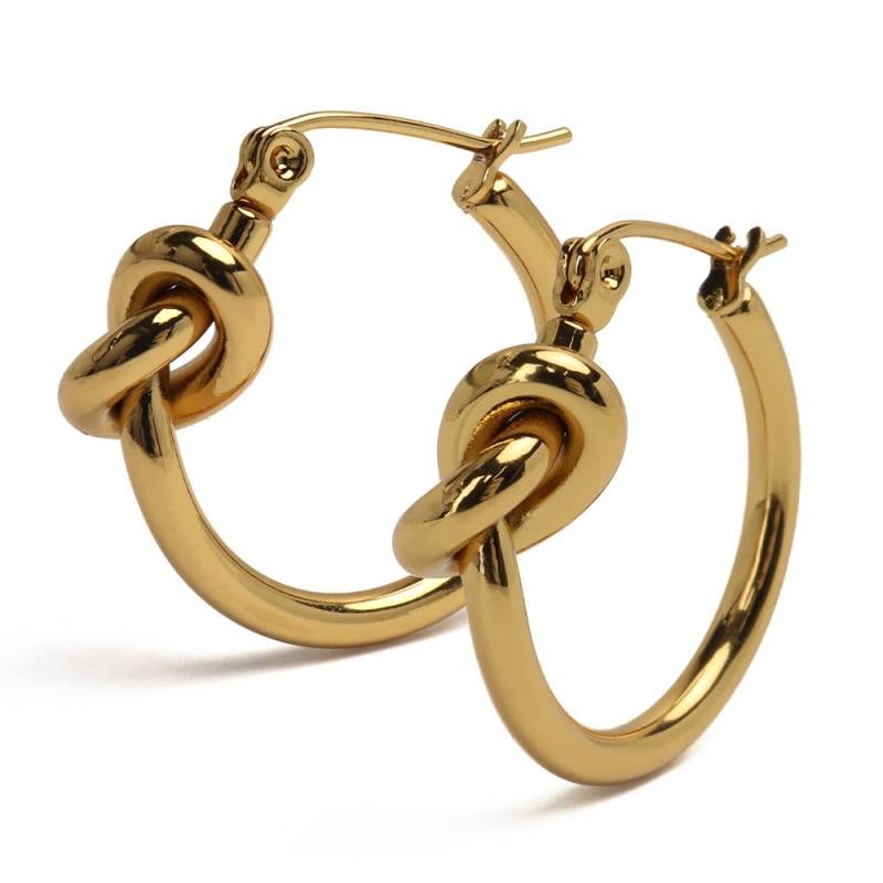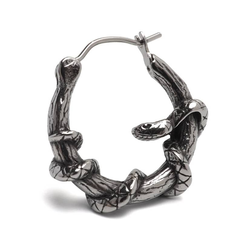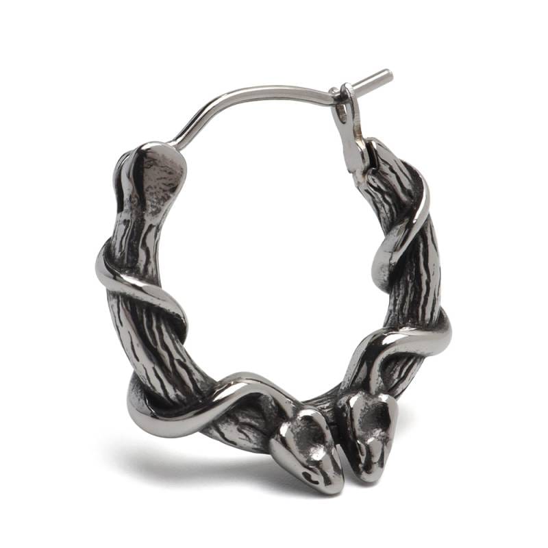 ステンレス メタリックなボディに編み込みが映えるフープピアス。2色 [e495]