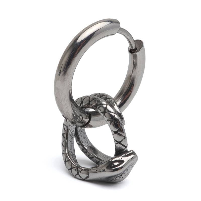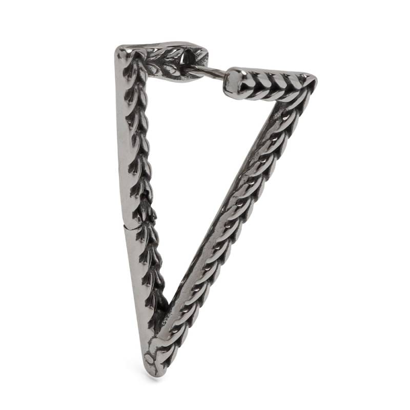ステンレス メタリックな3連ラインにひねりを加えたフープピアス。 [e492]