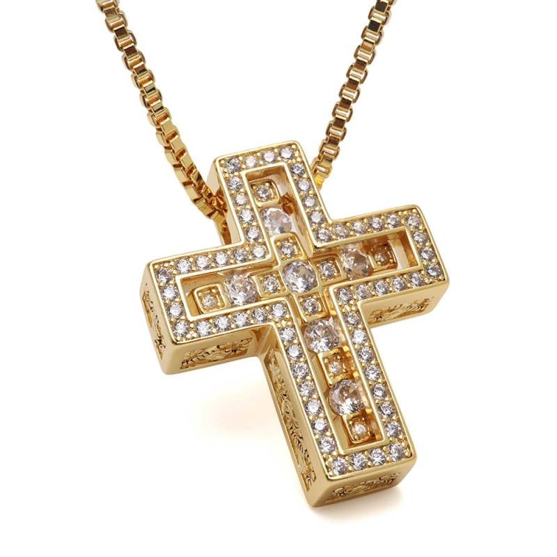 ステンレス 豪華なストーンが魅力的なクロスネックレス ゴールド [n1102-gold]