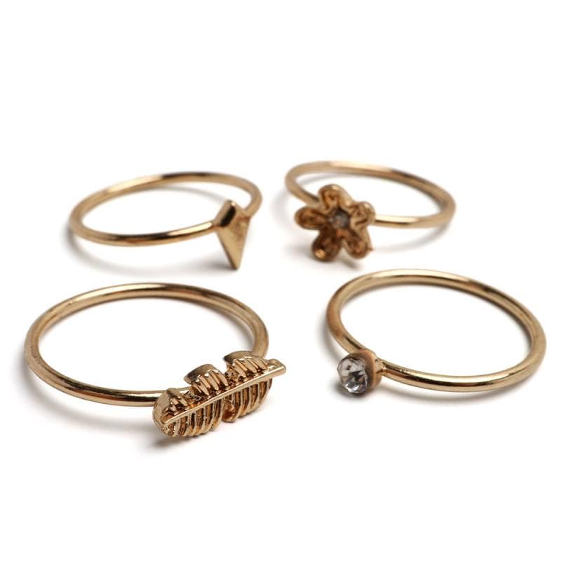プチプラセットリング 4点セット ビジュ―付きリング [r770]