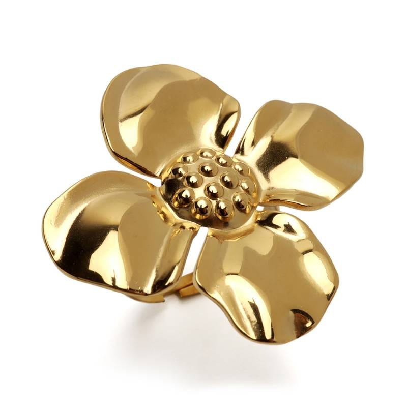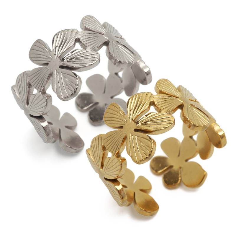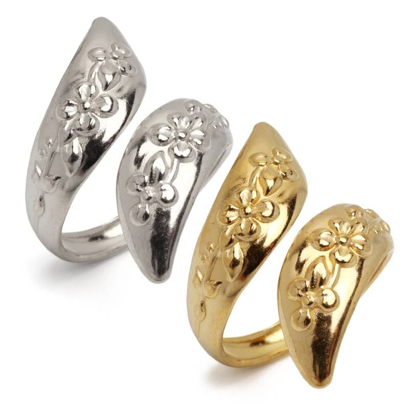 ステンレス 立体的に仕上げた一輪の薔薇が魅力的なフラワーリング。 [r906]