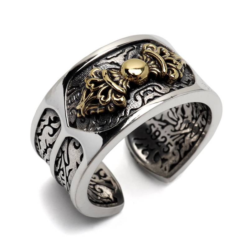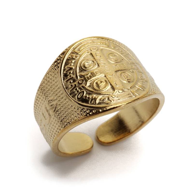ステンレス 聖ベネディクトモチーフを精巧にデザインしたリング。2色 [r929]