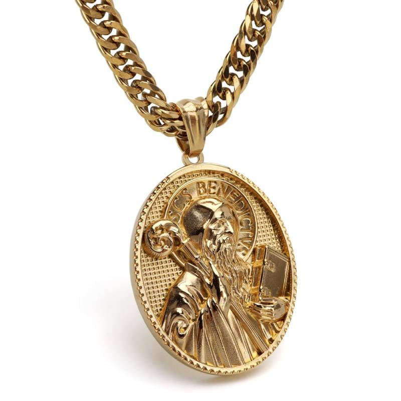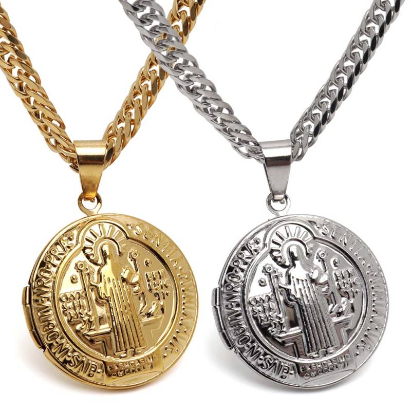 ステンレス ロケットペンダントネックレス 聖ベネディクト 3色 50cm 60cm [n1139]