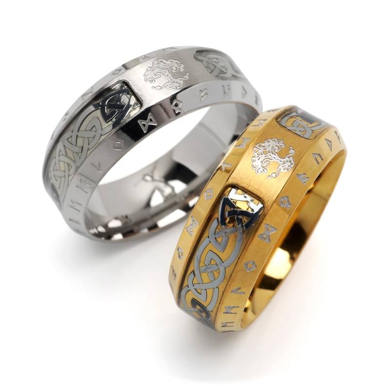 ステンレス ケルト文様とルーン文字の組み合わせで幻想的なリング。 [r918]