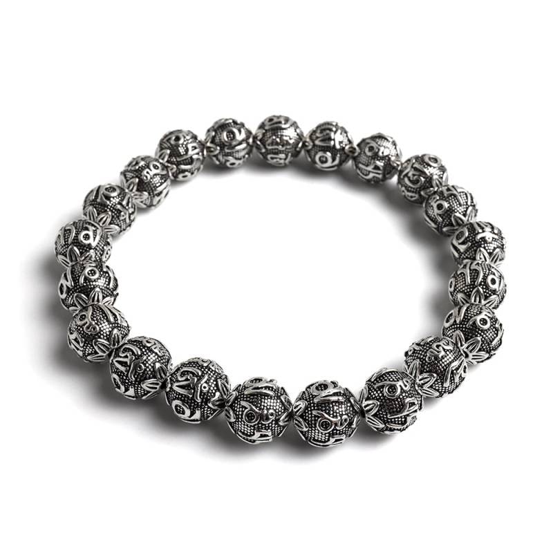 シルバー925 梵字ボールの数珠ブレスレット 幅10mm [bs292-10mm]