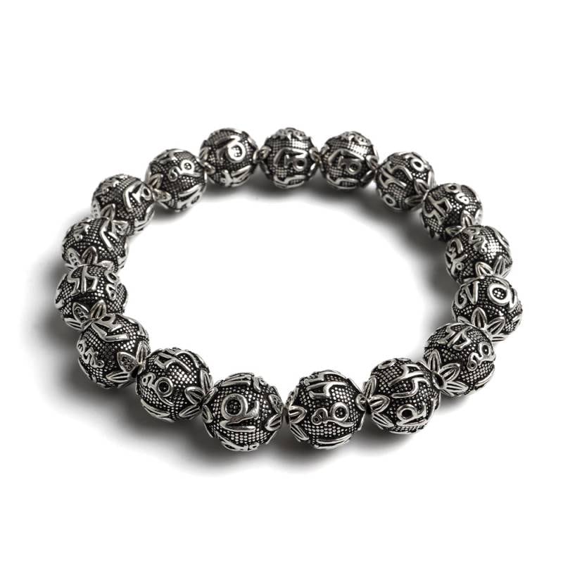 シルバー925 梵字ボールの数珠ブレスレット 幅12mm [bs292-12mm]
