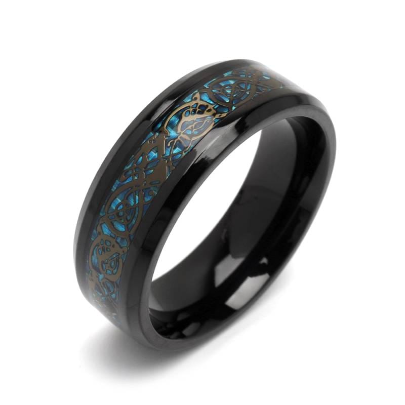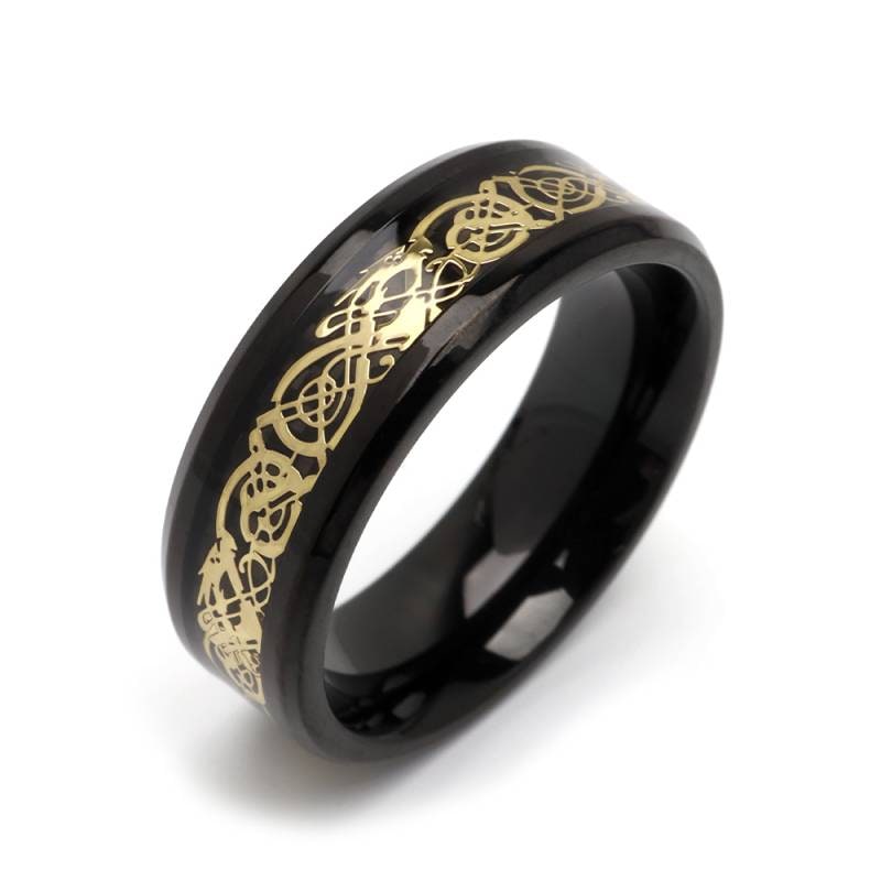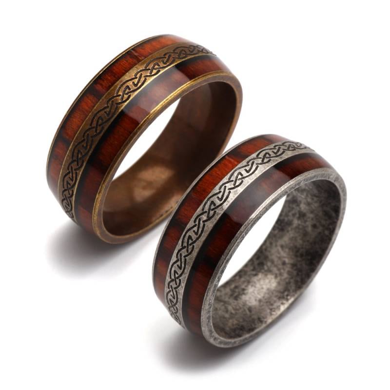 ステンレス ウッド調にケルト文様をデザインしたアンティークリング 2色 [r876]