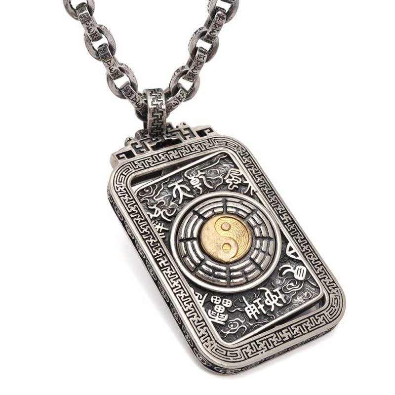 シルバー925 太極と八卦モチーフの組み合わせを精巧に表現したネックレス。 [ns267]