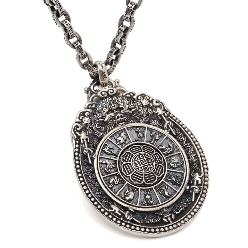 シルバー925 精巧に刻まれた干支モチーフが魅力的な曼茶羅ネックレス。 [ns268]