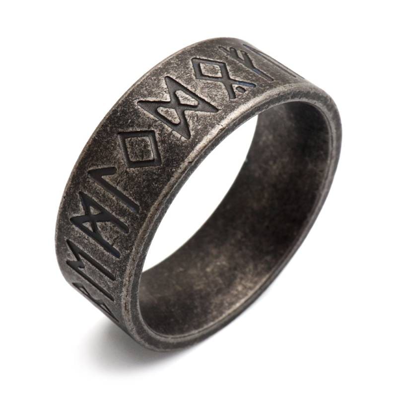 ステンレス ルーン文字モチーフのリング 燻し加工 [r875]