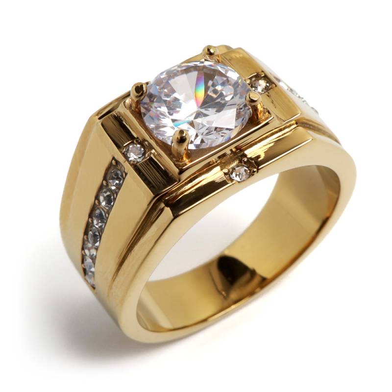 ステンレス 一粒 印台リング ワイド [r586-gold]