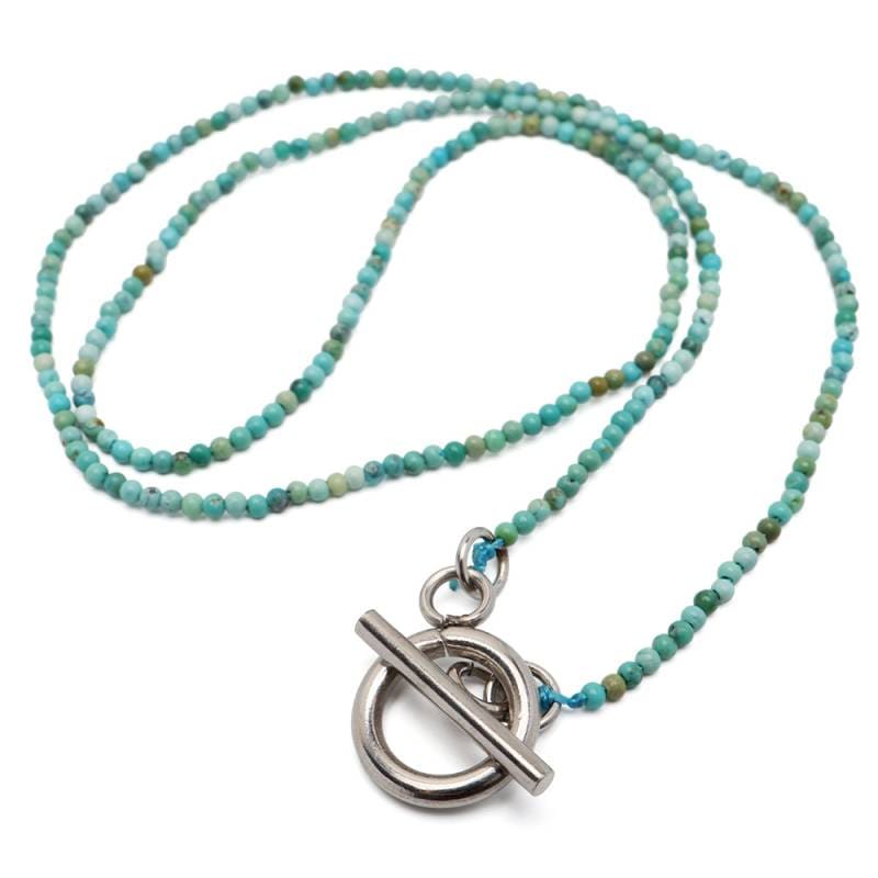 ステンレス ターコイズストーンのマンテルネックレス [n1155]