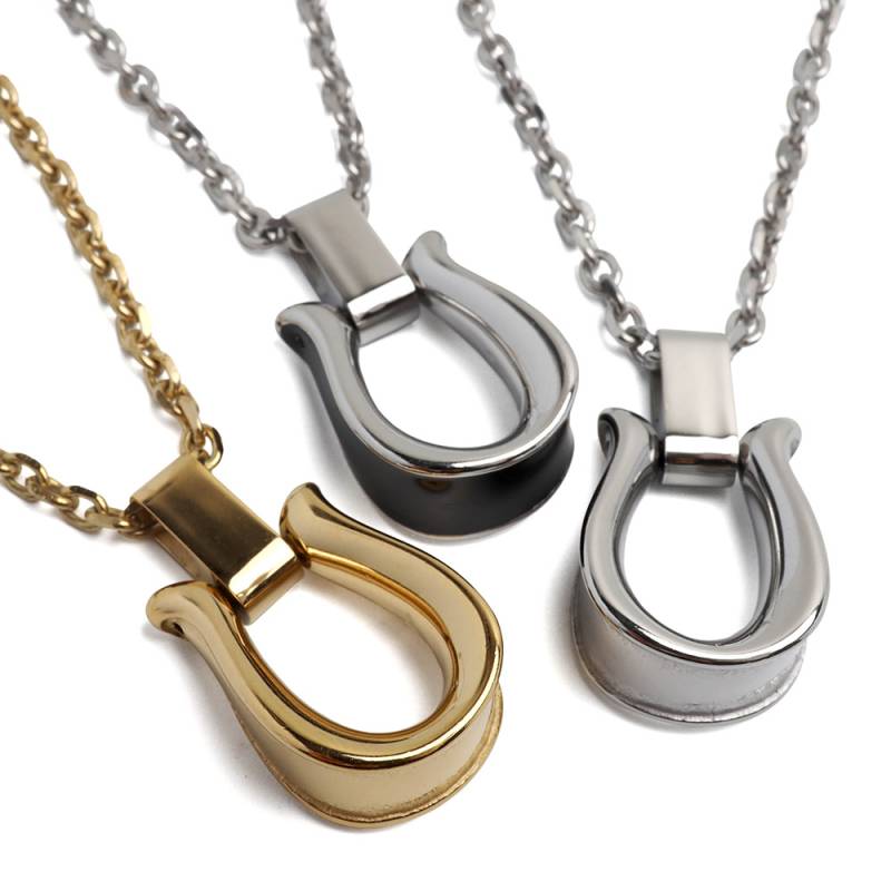 ステンレス オーバルリンクのーコマをペンダントにしたネックレス。2色 2サイズ [n1215]