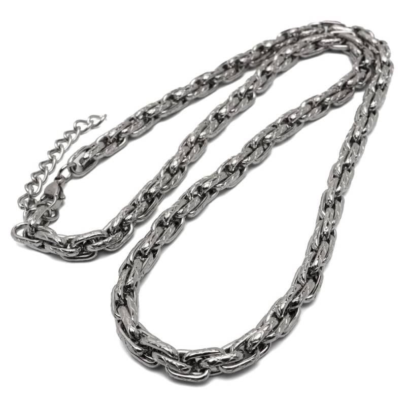 ステンレス 斜めカットが刻まれたロープチェーンネックレス 中折れ式 3サイズ [n1117]