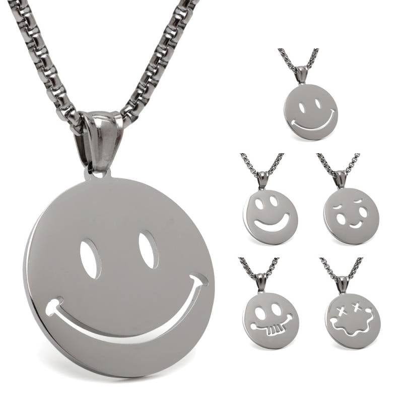 ステンレス 透かしデザインのニコちゃんペンダントネックレス。5タイプ [n1208]