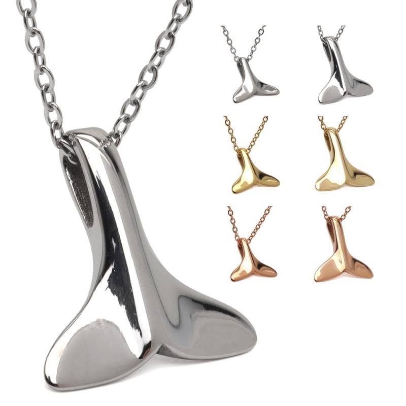 ステンレス クジラのしっぽをモチーフにしたペンダントネックレス。3カラー 2タイプ [n213]