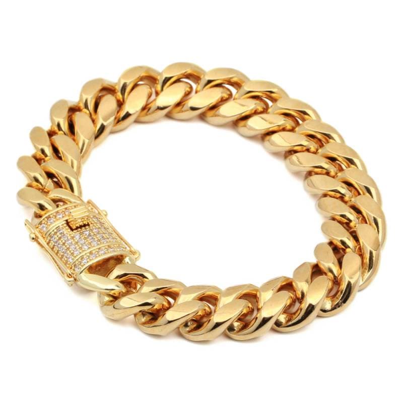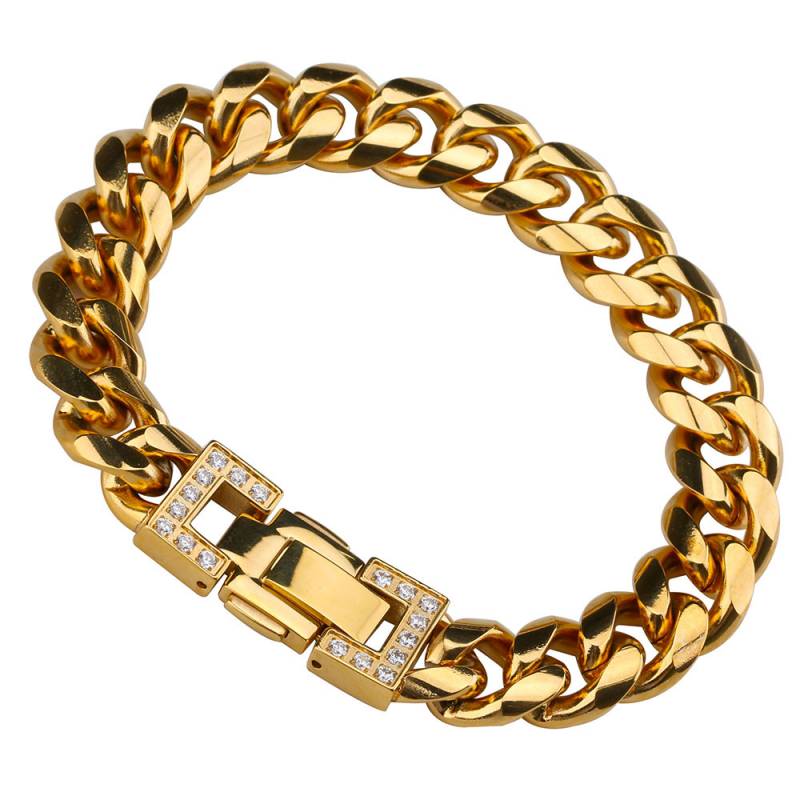 ステンレスCZ喜平ブレスレット 14mm [b284-gold-14mm]