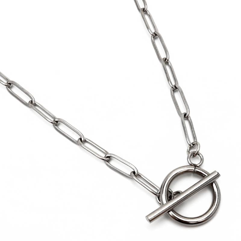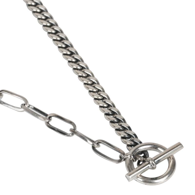 ステンレス 大きさ違いのロングリンクを組み合わせたY字チェーンネックレス。 [n604]