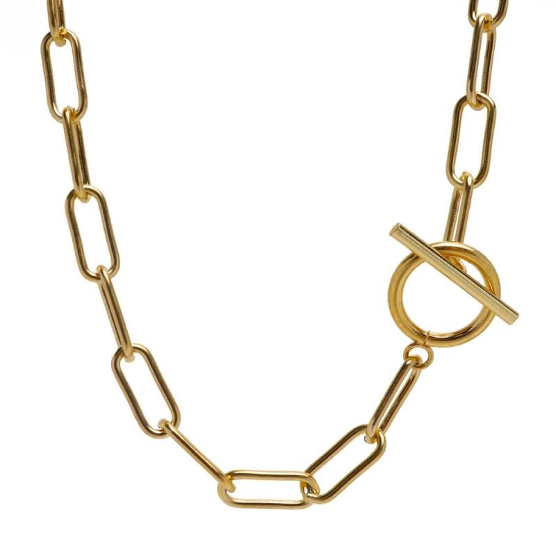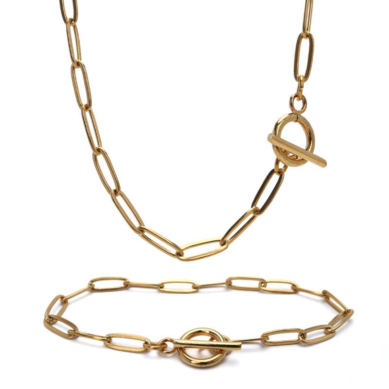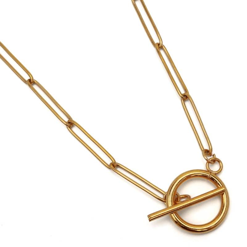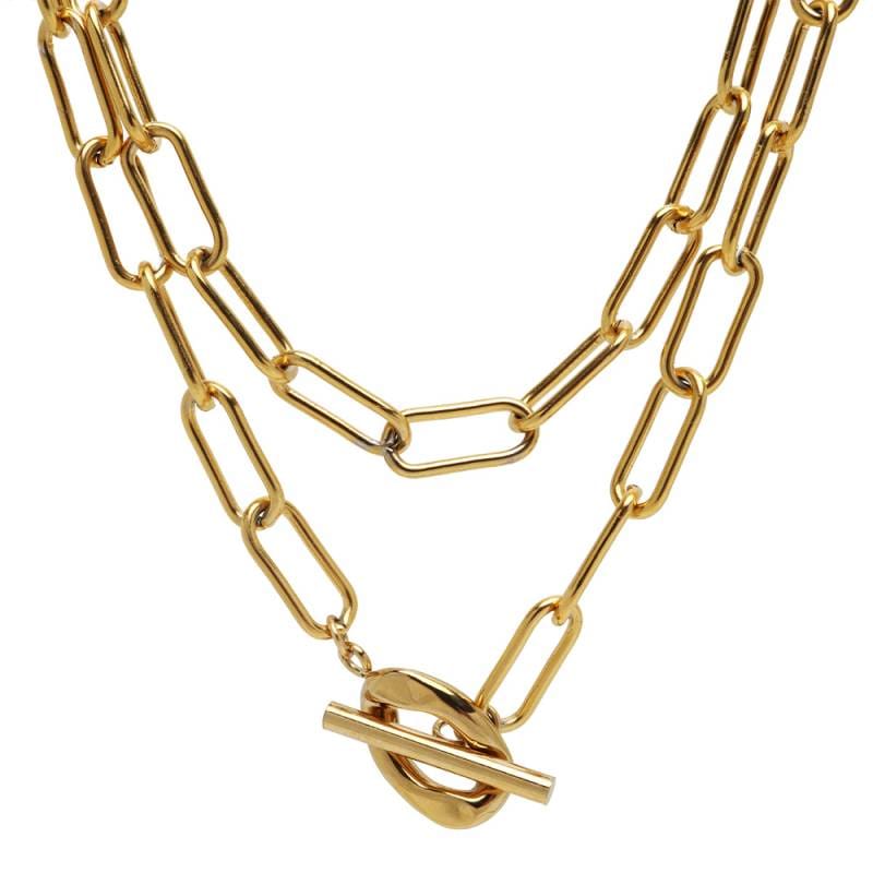 ステンレス マンテルチェーンネックレス [n343-gold]