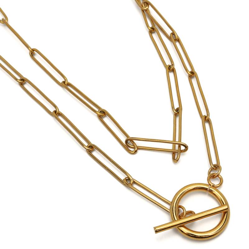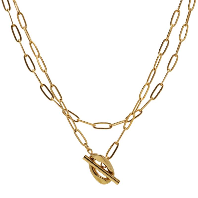 ステンレス ゴールドの二重ネックレス [n1075-e-80cm]