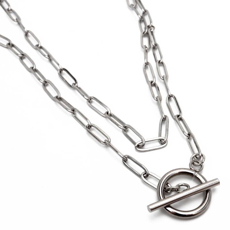 ステンレス マンテルチェーンネックレス [n343-silver]