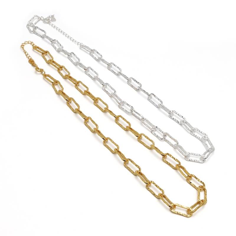 ステンレス ロングリンクが軽やかなミックスカラーのチェーンチョーカー。 [n605]