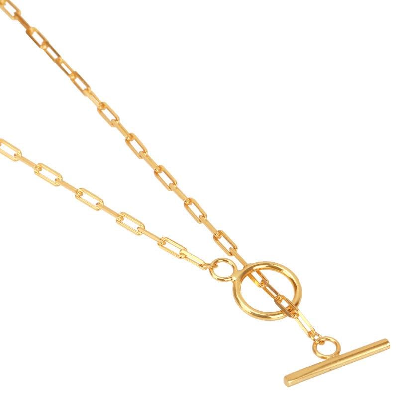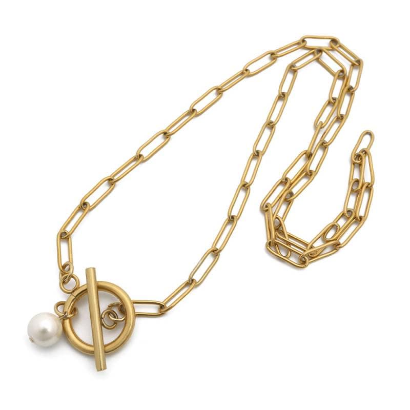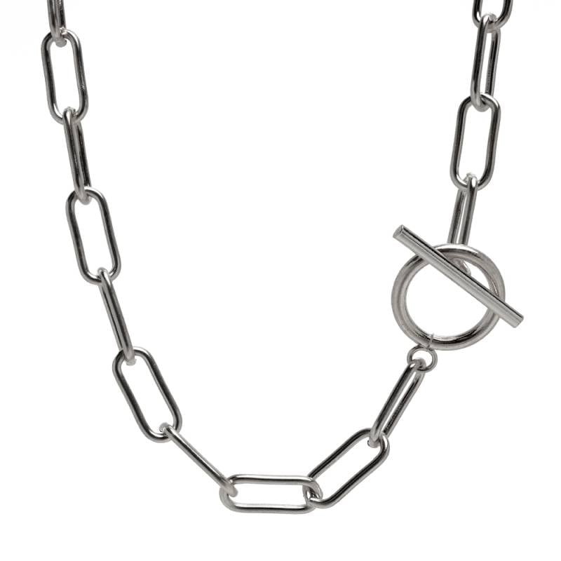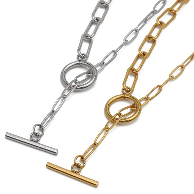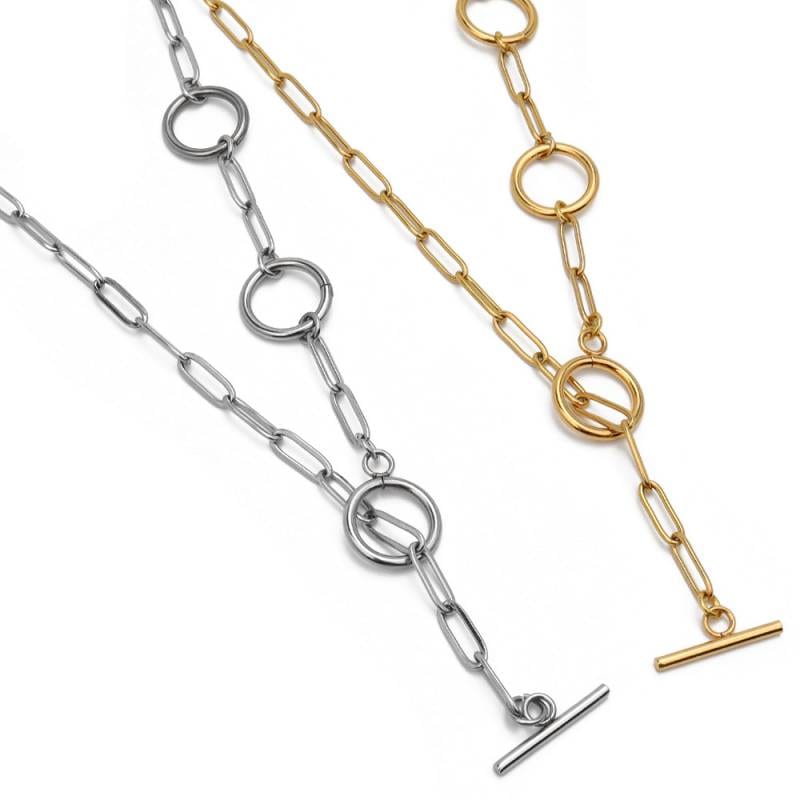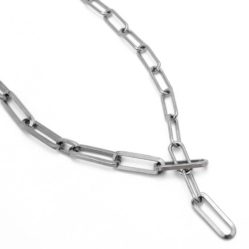 ステンレス 大きさ違いのロングリンクを組み合わせたY字チェーンネックレス。 [n604]