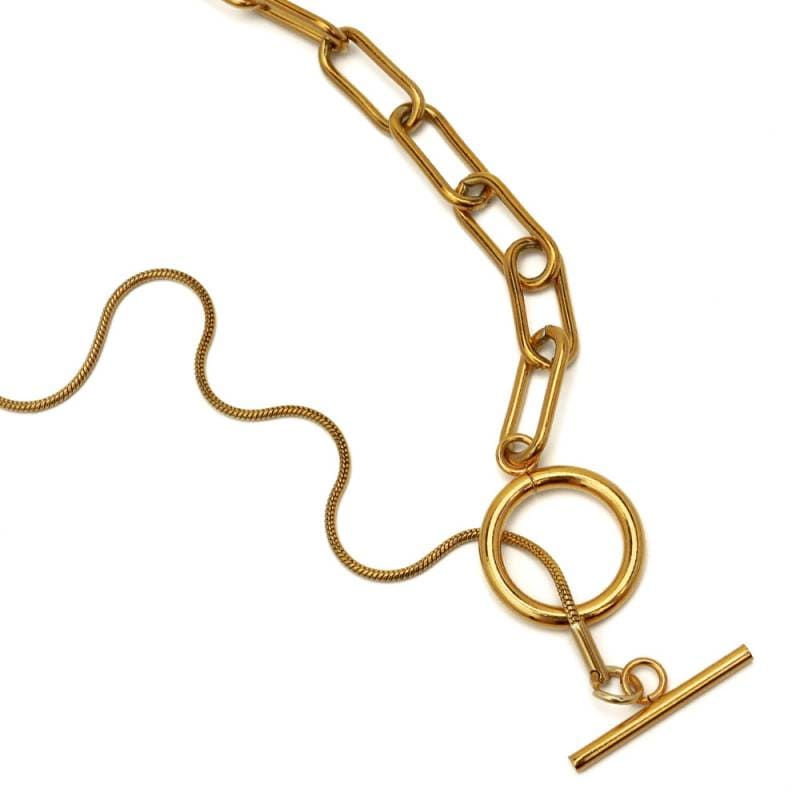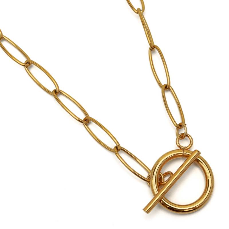 ステンレス マンテルチェーンネックレス [n343-gold]