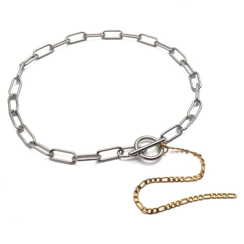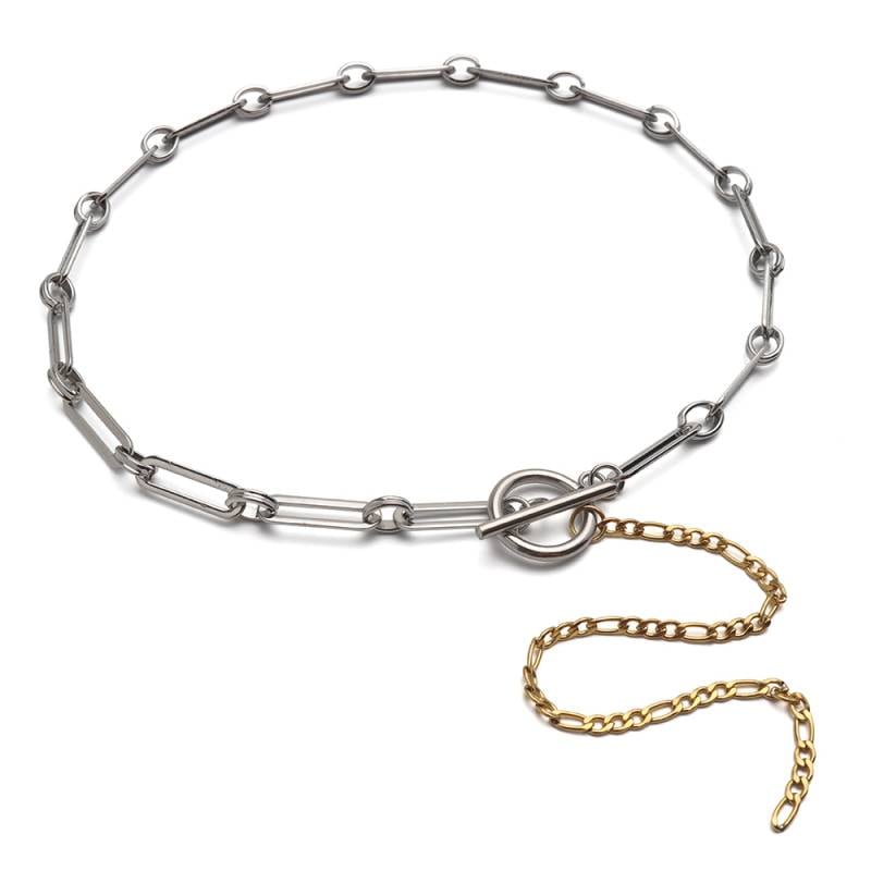 ステンレス ロングリンクが軽やかなミックスカラーのチェーンチョーカー。 [n605]