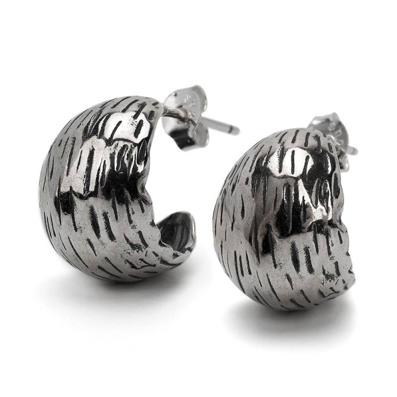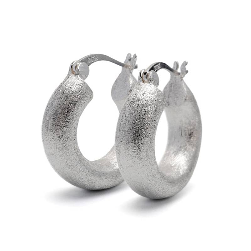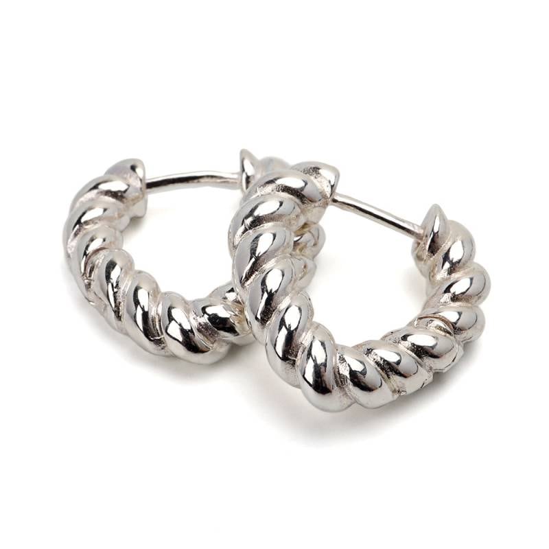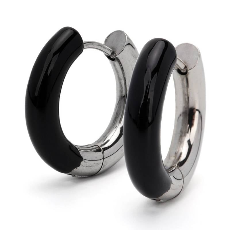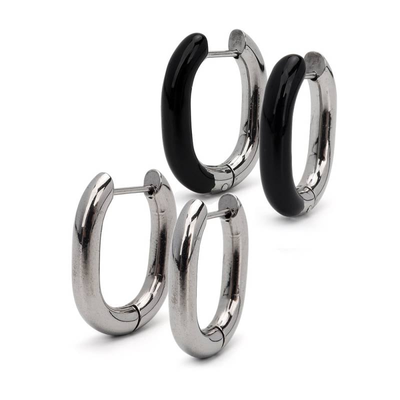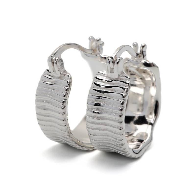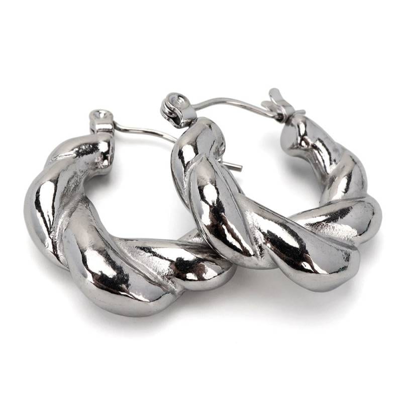 ステンレス メタリックな3連ラインにひねりを加えたフープピアス。 [e492]