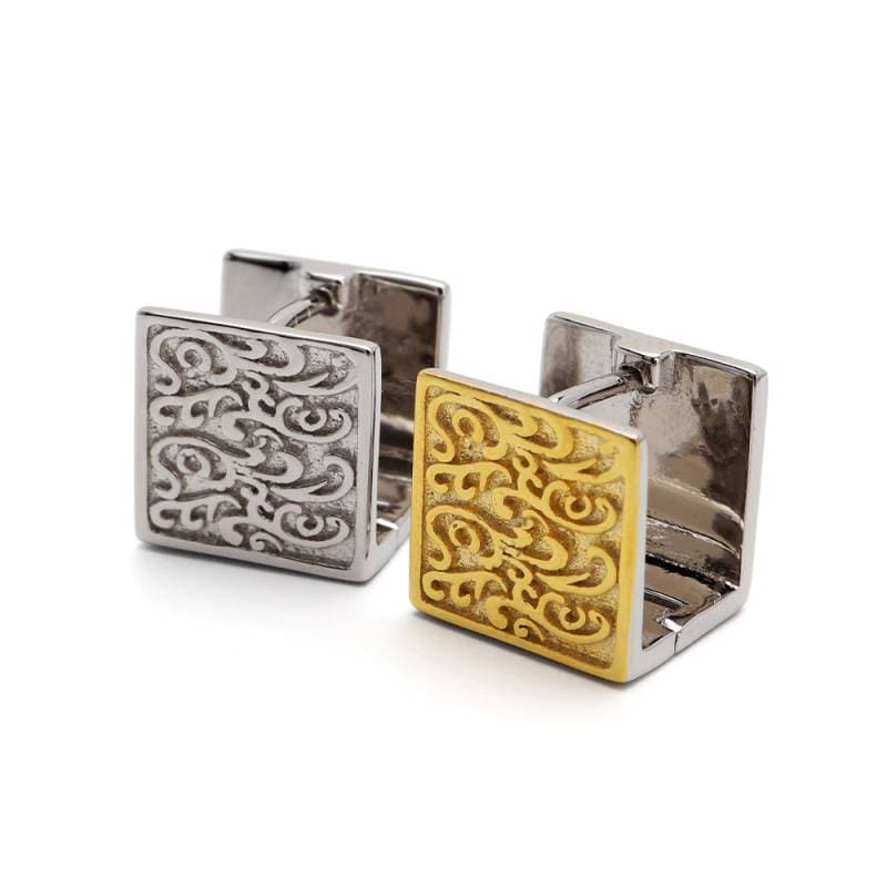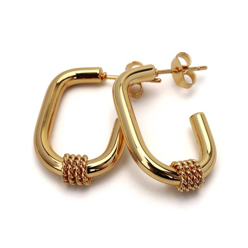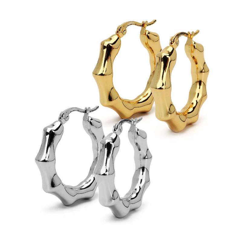 ステンレス メタリックな3連ラインにひねりを加えたフープピアス。2色 [e494]