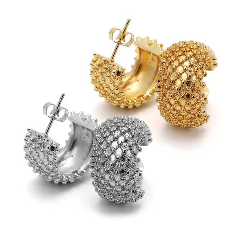 ステンレス メタリックな3連ラインにひねりを加えたフープピアス。2色 [e493]