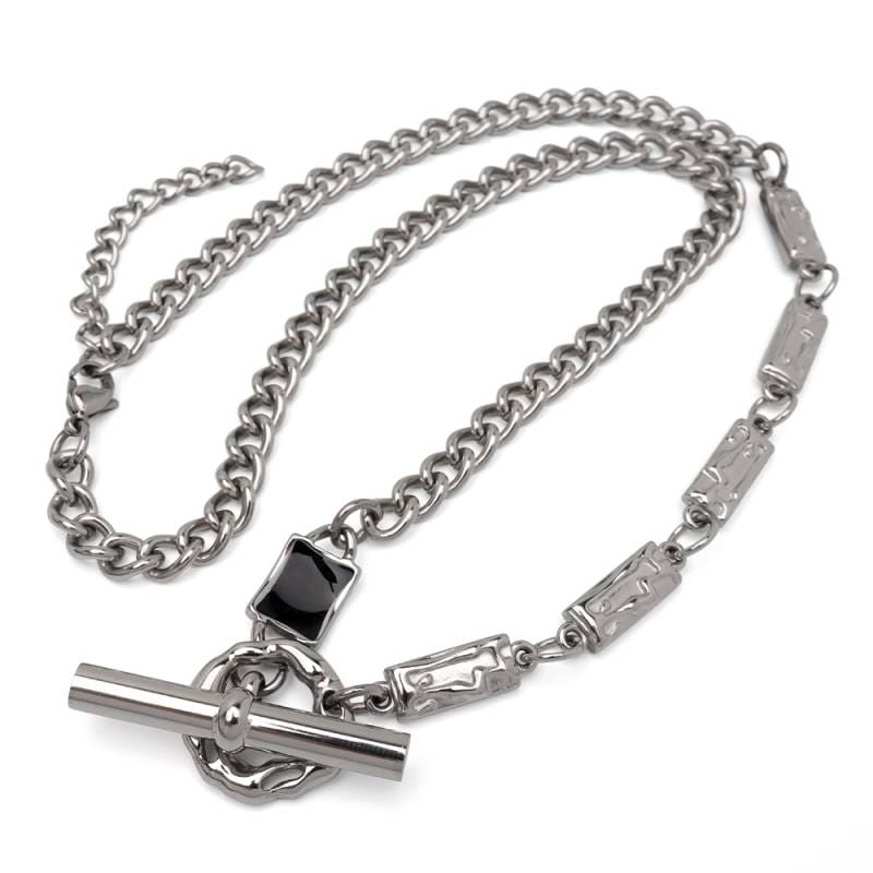 ステンレス 様々なパーツを組み合わせたユニークなネックレス。 [n1207]