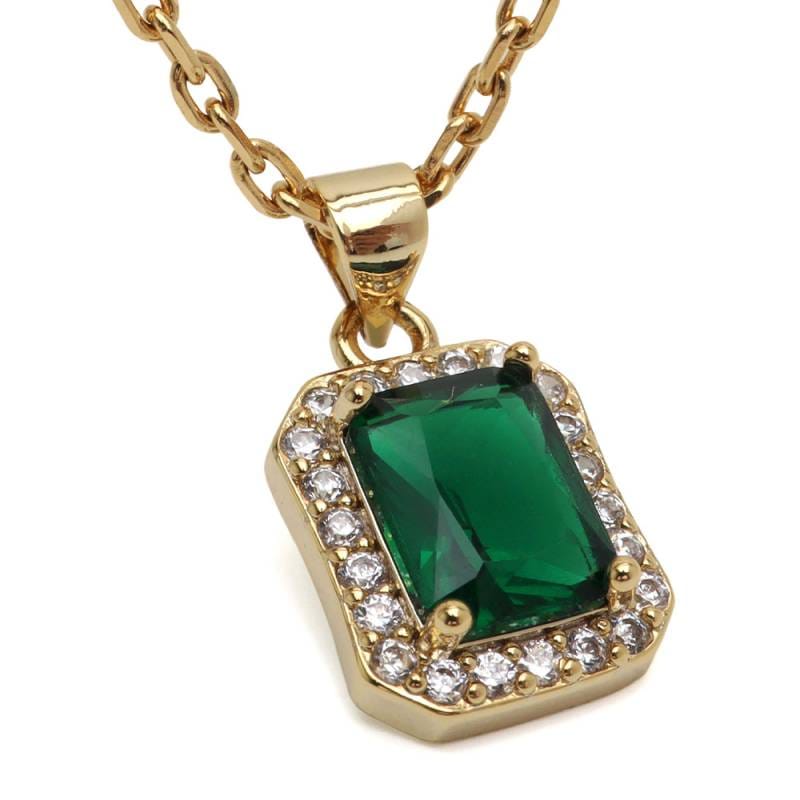 ステンレス カットが美しいグリーンストーンを据えたネックレス。 [n1209]