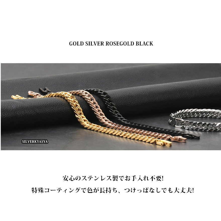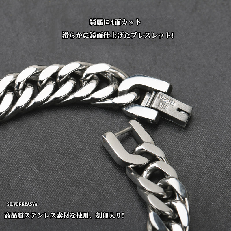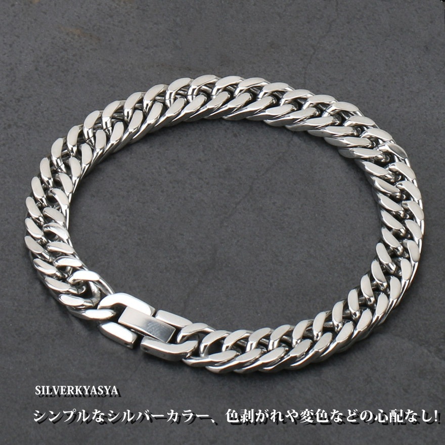 【SILVER KYASYA発大人気のチェーンブレスレット】 HIP-HOPアーティストがこよなく愛する定番のマイアミキューバンリンクチェーンのブレスレットタイプ。喜平チェーンとも呼ばれるこのブレスレットは重厚感が腕元のアクセントに最適なアイテムです。 【活躍シーン】 フェスやクラブ・音楽イベント等のシーンや、ダンス衣装に合わせるなど。もちろん普段使いとしてお気に入りの服装とあわせても○ 自分へのご褒美としても、友人や恋人へのプレゼントやギフトとしてもおすすめです。 【PIC UP】 本体に使用しているのは高品質ステンレス素材。金属アレルギーフリーアイテムです。耐久性に優れており、水や汗などで錆びることはありません。 留め具は中折れ式バックルタイプ。見た目も格好良く留め具で差をつける仕上がり。腕元の存在感は抜群! | |