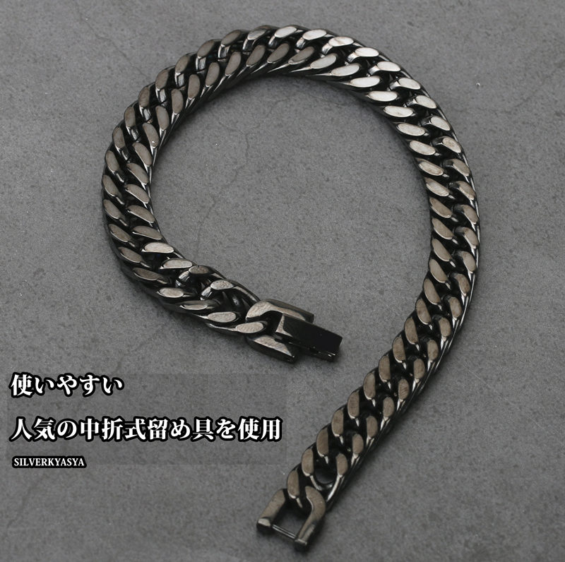 【SILVER KYASYA発大人気のチェーンブレスレット】 HIP-HOPアーティストがこよなく愛する定番のマイアミキューバンリンクチェーンのブレスレットタイプ。喜平チェーンとも呼ばれるこのブレスレットは重厚感が腕元のアクセントに最適なアイテムです。 【活躍シーン】 フェスやクラブ・音楽イベント等のシーンや、ダンス衣装に合わせるなど。もちろん普段使いとしてお気に入りの服装とあわせても○ 自分へのご褒美としても、友人や恋人へのプレゼントやギフトとしてもおすすめです。 【PIC UP】 本体に使用しているのは高品質ステンレス素材。金属アレルギーフリーアイテムです。耐久性に優れており、水や汗などで錆びることはありません。 留め具は中折れ式バックルタイプ。見た目も格好良く留め具で差をつける仕上がり。腕元の存在感は抜群! | |