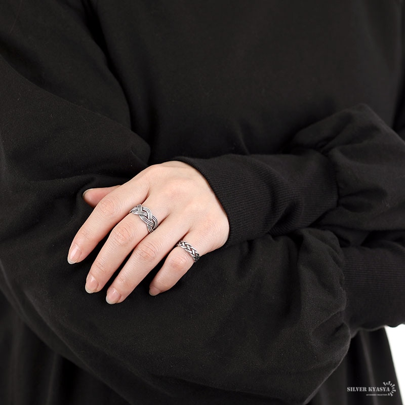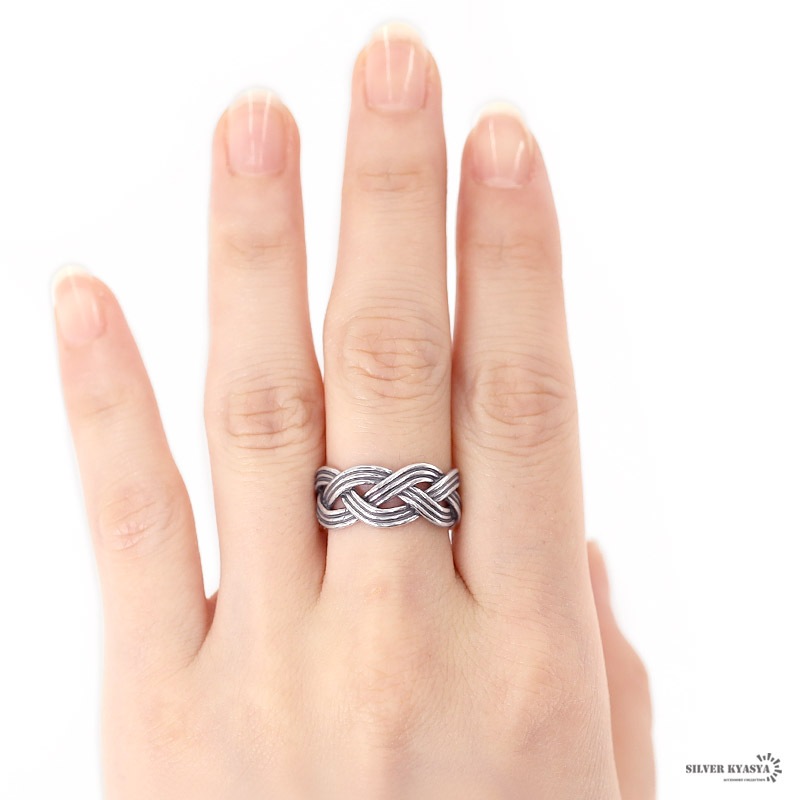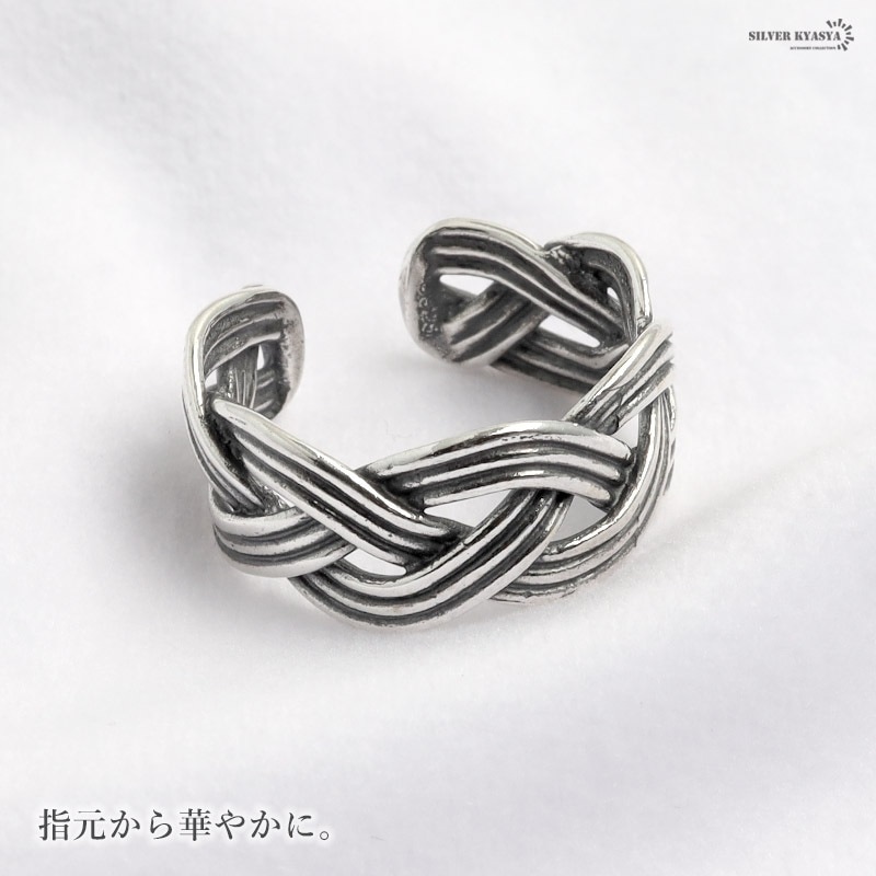 編み込みデザインの存在感あるリング。アンティークな雰囲気が、お洒落を格上げしてくれます。素材には、人気のSILVER925を使用。サビや劣化がほとんどなく、金属アレルギーも出にくい。ギフト用にも、保管用にも便利!当店オリジナル巾着ポーチと一緒にお届け。 | |