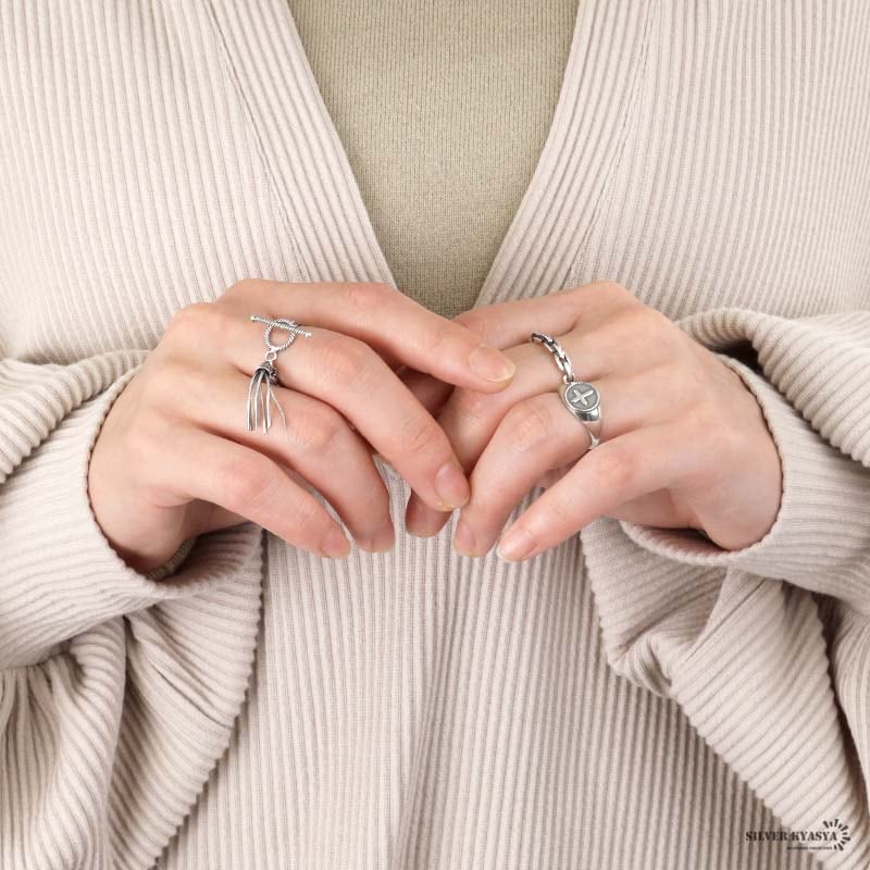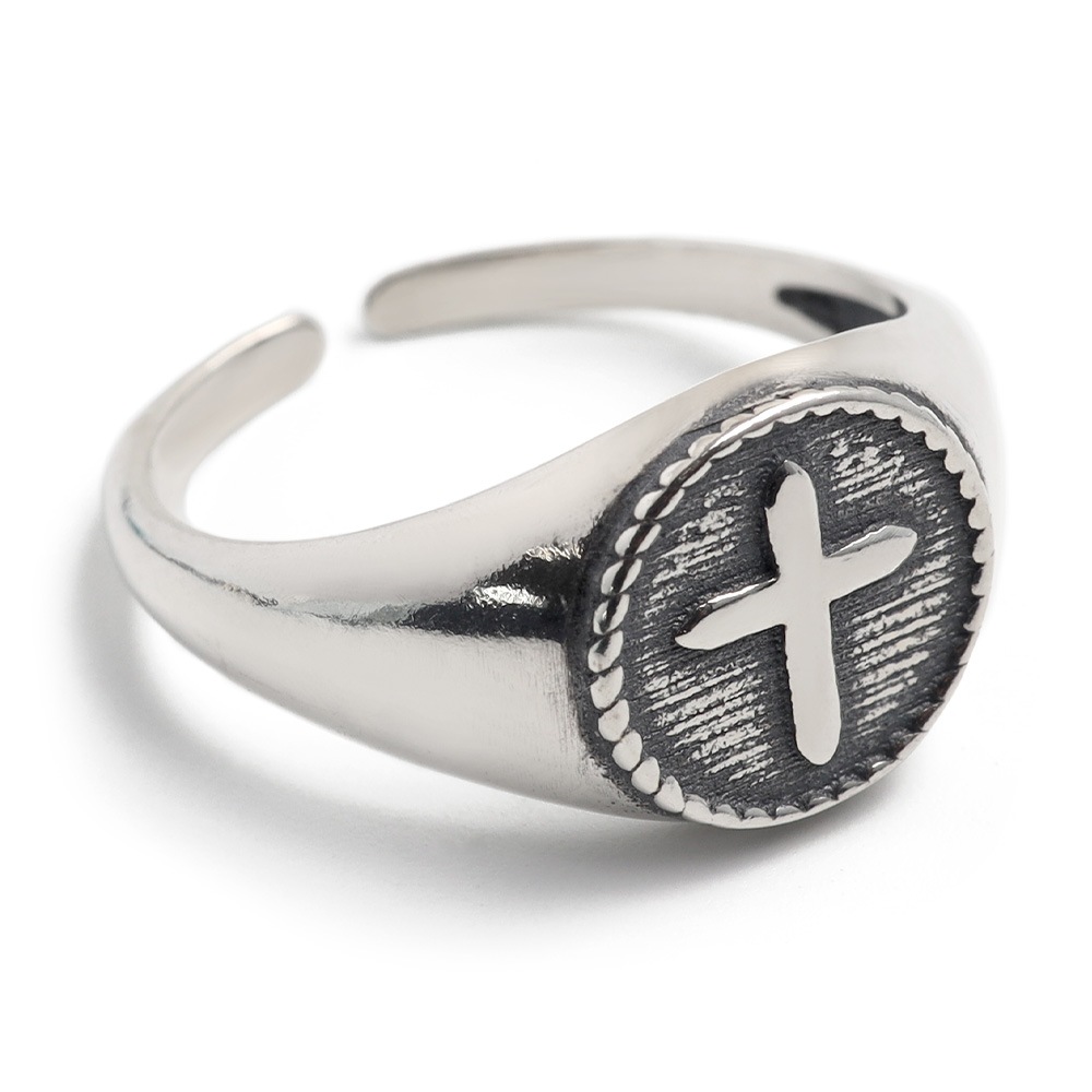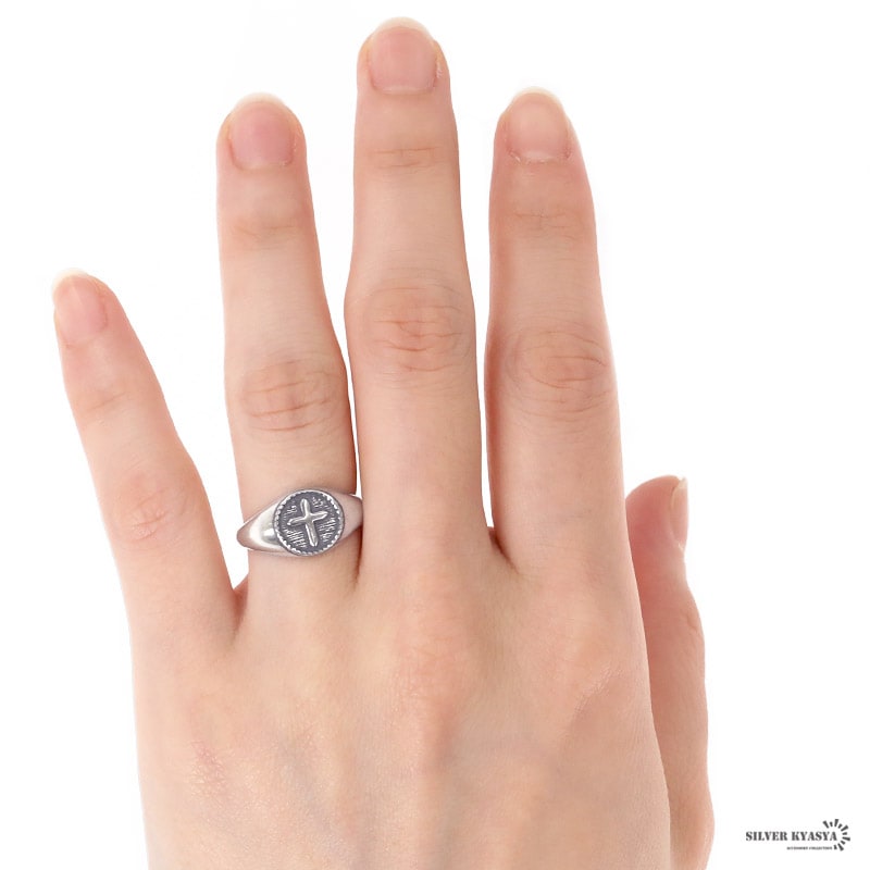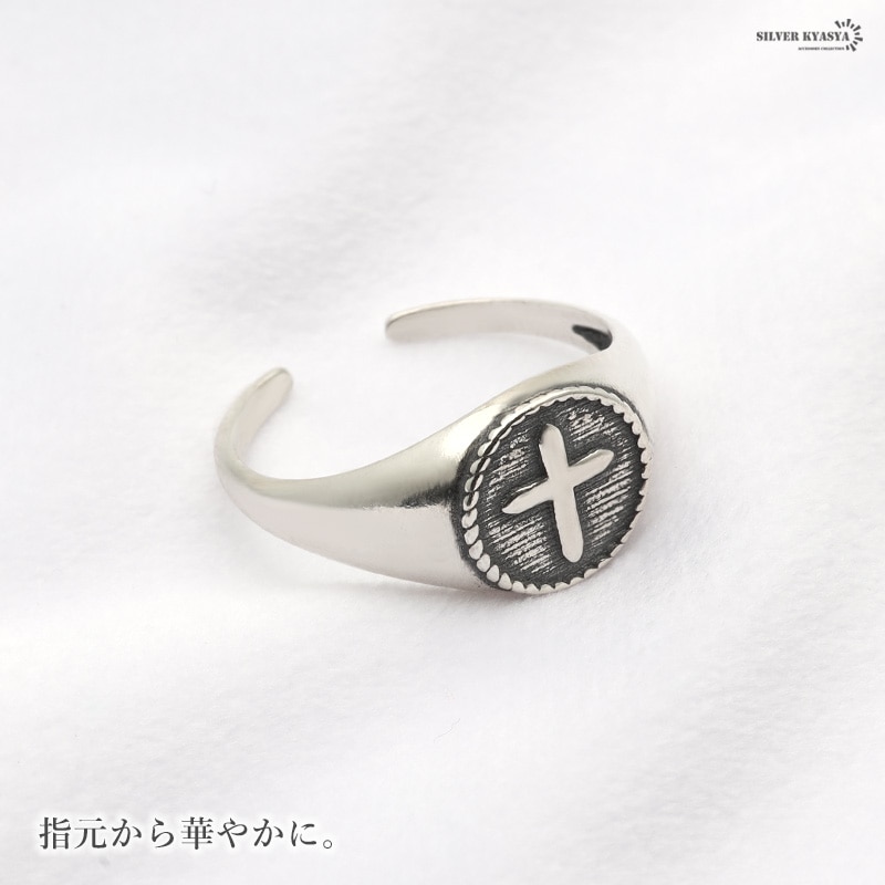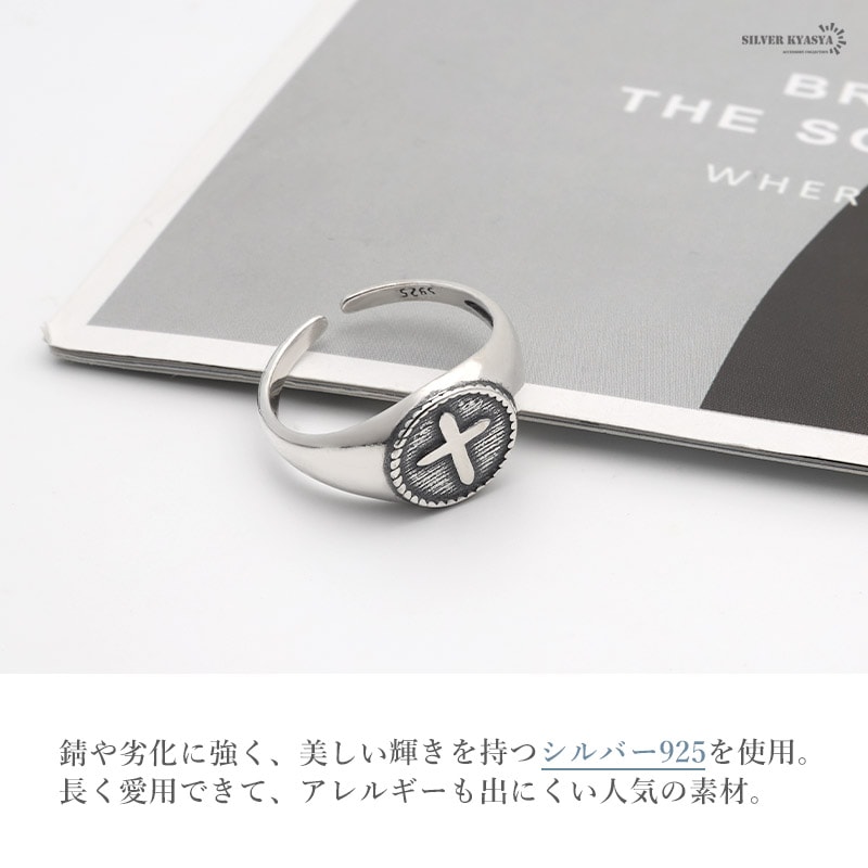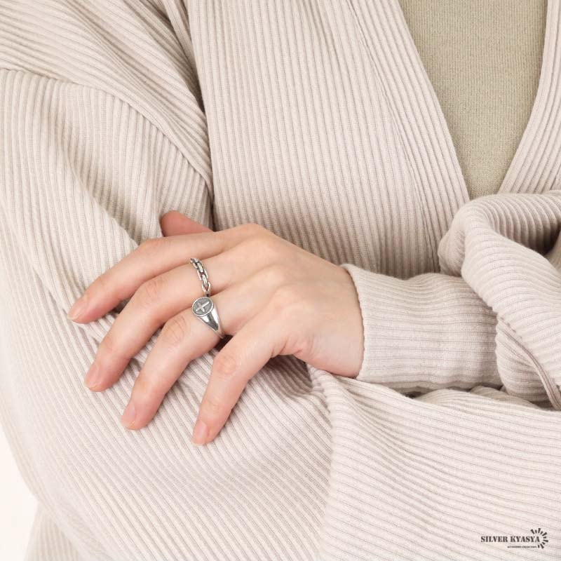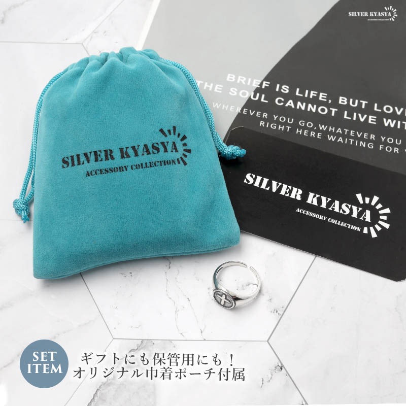 クロスモチーフがお洒落な印台リング。シンプルな中に、こだわりが活きる大人なアイテム。素材には、人気のSILVER925を使用。サビや劣化がほとんどなく、金属アレルギーも出にくい。ギフト用にも、保管用にも便利!当店オリジナル巾着ポーチと一緒にお届け。 | |