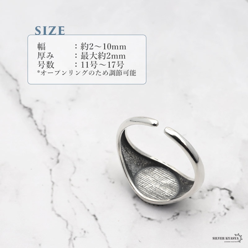 | | 幅:約2mm~10mm 厚み:最大約2mm 号数:11号~17号(オープンリングのため調節可能) |