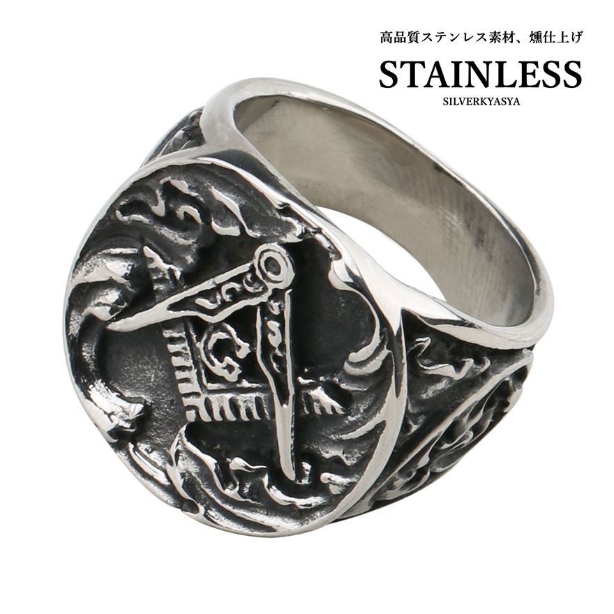 ステンレス スクエアストーン つや消し印台リング 3タイプ [r944]