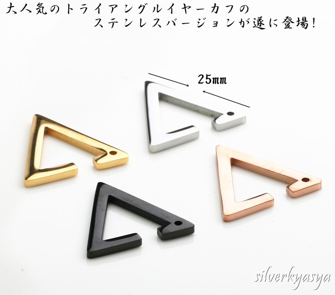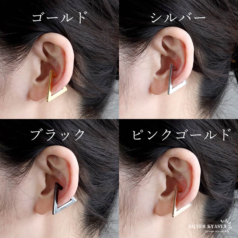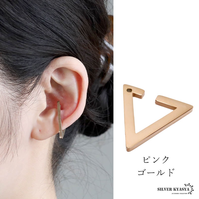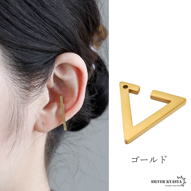 ■ITEM DETAIL 三角形のシンプルなイヤーカフ。メタルな質感とエッジの鋭いシャープな見た目が洗練された印象を与えます。ファッションのアクセントに最適なアイテムです。 ■ステンレス素材を使用 金属部分は頑丈なことで知られるステンレス素材を採用。耐久性はもちろん耐水性も高く水場での着用も可能。金属アレルギーも出にくいとされている金属です。 | |