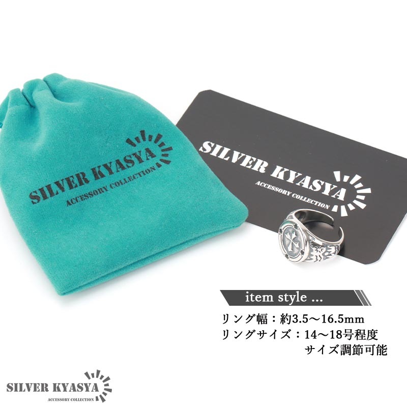 | | リング幅:約3.5~16.5mm リングサイズ:14~18号程度調整可能 |