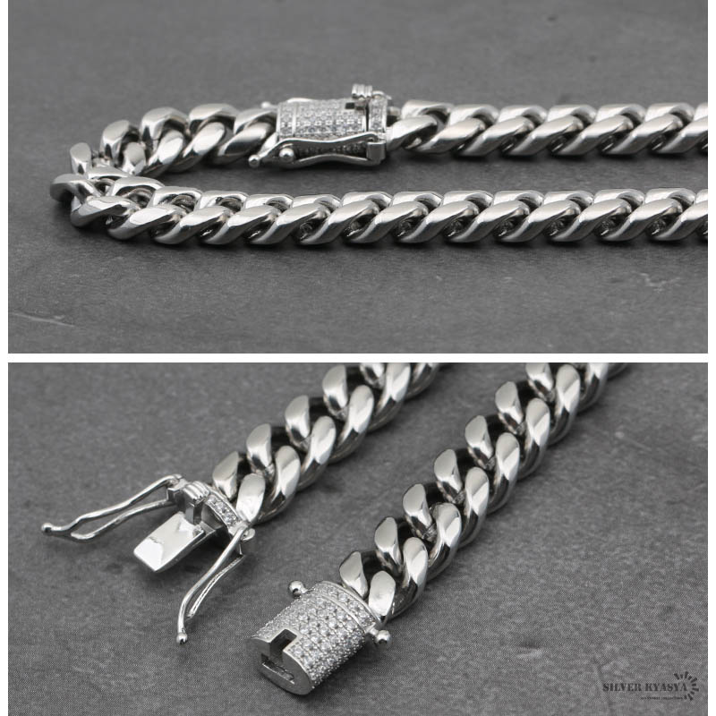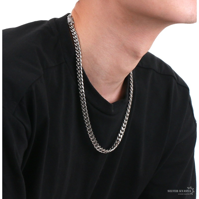 【SILVER KYASYA発大人気のチェーンネックレス】 HIP-HOPアーティストがこよなく愛する定番のマイアミキューバンリンクチェーンのネックレスタイプ。喜平チェーンとも呼ばれるこのネックレスは重厚感が首元のアクセントに最適なアイテムです。 【活躍シーン】 フェスやクラブ・音楽イベント等のシーンや、ダンス衣装に合わせるなど。もちろん普段使いとしてTシャツやお気に入りの服装とあわせても○ 自分へのご褒美としても、友人や恋人へのプレゼントやギフトとしてもおすすめです。 【PIC UP】 留め具はAAAランクのキュービックジルコニアをふんだんにパヴェしたラグジュアリーな二重ロックタイプをセット!留め具で差をつけるアイテムです! | |